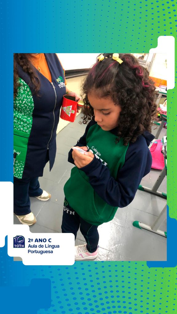 Durante a aula de Língua Portuguesa, a turma do 2º ano C participou de uma atividade lúdica e significativa com o objetivo de desenvolver a leitura, a escrita e o raciocínio lógico. A proposta consistiu em uma “caixa de charadas”, na qual cada criança retirava uma charada, realizava a leitura com o apoio da professora e tentava adivinhar a palavra correspondente.